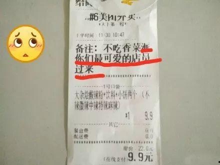 还有一次,一个顾客在备注里写:“外卖小哥,你今天吃瓜了吗?”原来,这位顾客和外卖小哥是邻居,他们平时关系就很好,所以顾客想通过这种方式和外卖小哥开个玩笑。